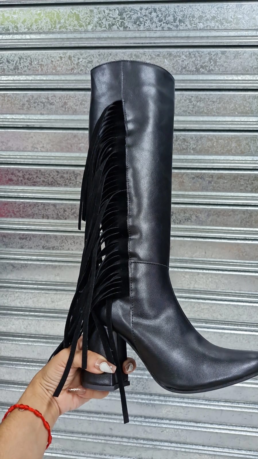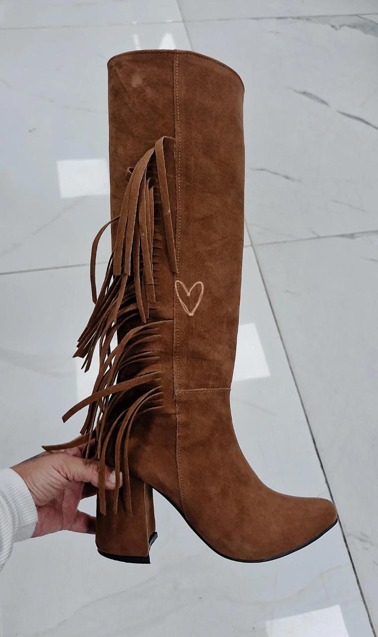 Bota caña alta con flecos, un modelo que no pasa desapercibido.