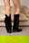 Bota caña alta de tela gamuza, con flecos que aportan movimiento y un estilo bien marcado.