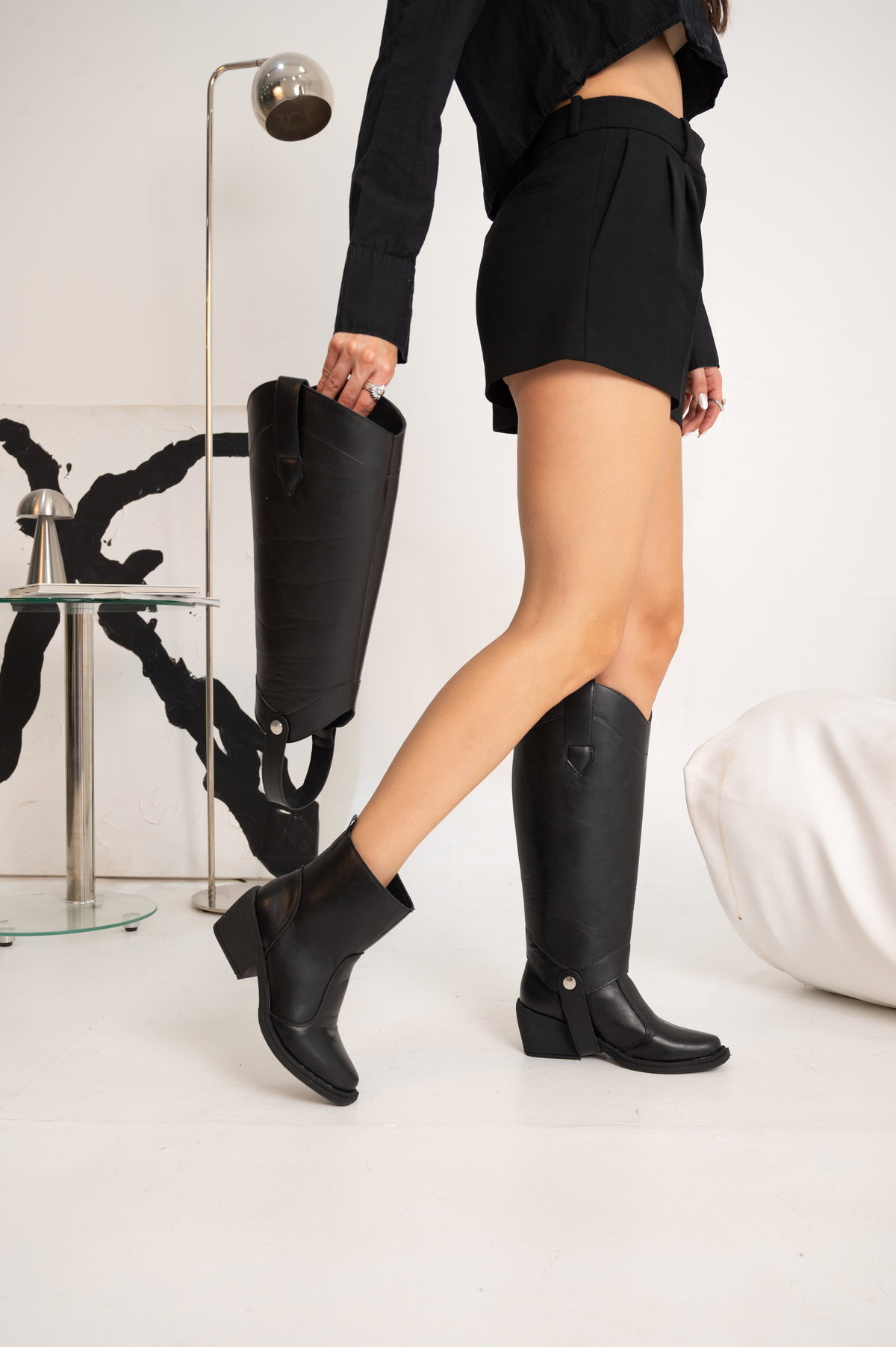 Bota 2 en 1 de diseño versátil, pensada para adaptarse a distintos estilos en un solo modelo. Puede usarse como bota caña alta o como bota corta, permitiéndote cambiar el look según la ocasión.